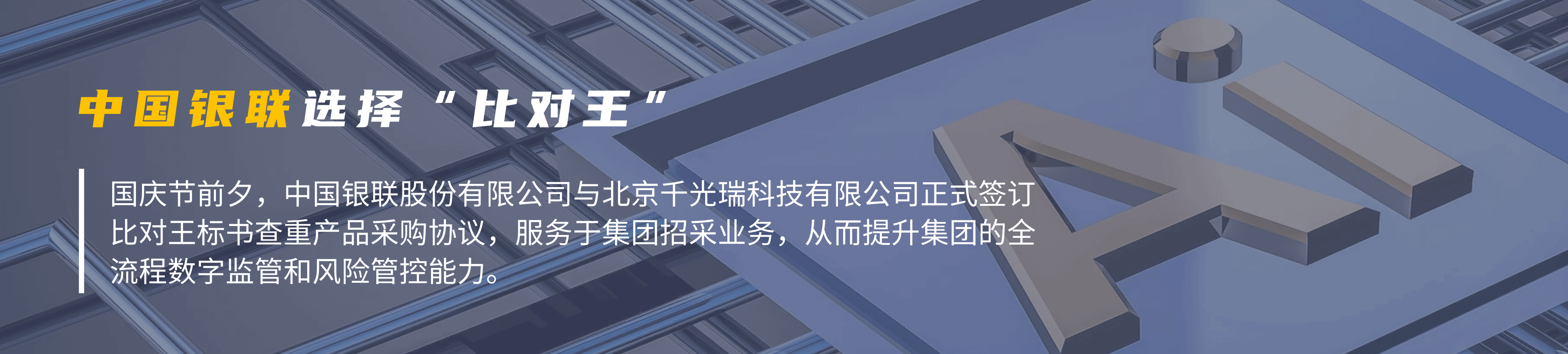 • 中國銀聯選擇“比對王”。 【2024-10-08】